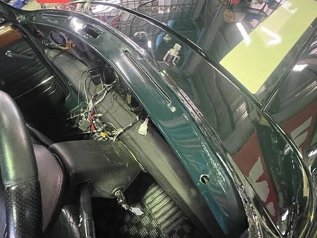 ガレージの静かな午後、ミニのダッシュボードがメカニック達によって