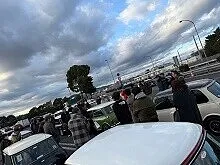 まだ暗い中のフジックス出発組。全体集合は小田原厚木道路平塚パーキング。ツーリングセットをお渡しミーティング。